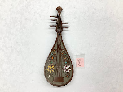 金属の素地にガラス質の釉を焼き付けた美しい矢立。
